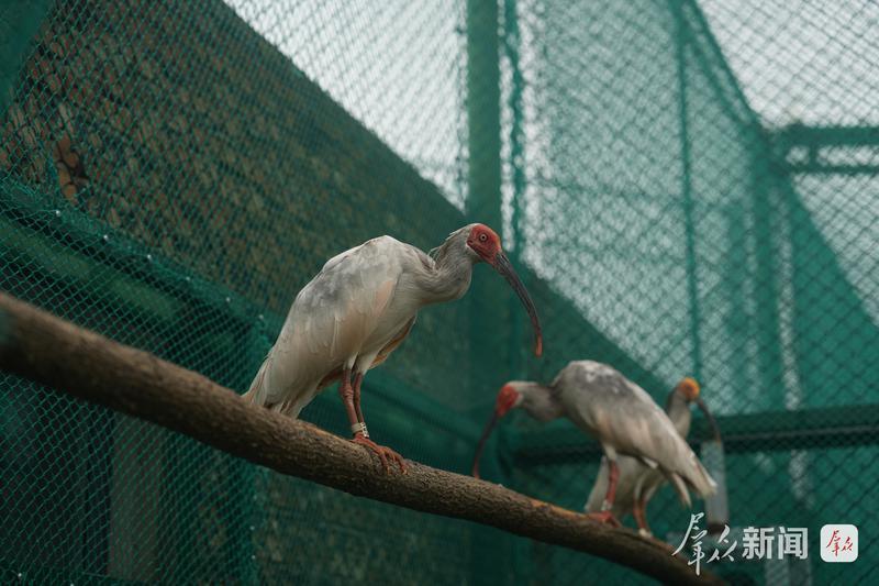 冬日的无定河畔寒风凛冽。在陕西榆林横山朱鹮繁育基地,40多只朱鹮悠闲踱步,一派恬静景象-•▲。
