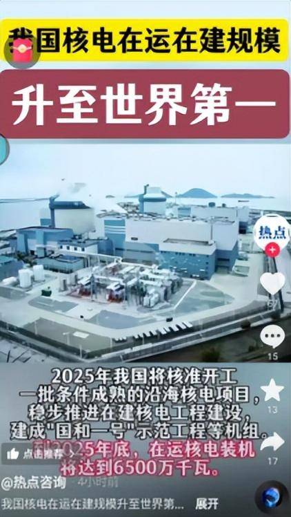2026年初的最新统计数据显示,中国在运核电机组59台,在建机组53台,总装机容量突破1.25亿千瓦,连续数年位居世界第一。